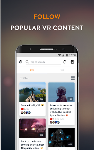 Fulldive is a 100% user generated virtual reality (VR) content and navigation platform. It is also a social platform that allows you to follow what your friends watch, react, and comment on, and share your favorite reacted videos. Fulldive allows you to browse and view a new generation of media, such as watching 3D and 360 photos and videos, and also browse the Internet like never before.